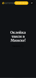 | AI-анализ | This website is for a business called Autoprint, located in Minsk, Belarus, that specializes in taxi branding using various types of stickers and magnets. The title of the website is "AUTOPRINT оклейка такси Яндекс в Минске" (Autoprint Taxi Sticker Yandex in Minsk). The description mentions services such as "брендирование Яндекс Go" (Yandex Go branding) and "оклейка такси желтой пленкой" (taxi sticker with yellow film). The website provides various taxi branding options including yellow and gold stickers and magnets, as well as magnets with different shapes (шашки) and information about the taxi company. The prices for the services are listed in the table with corresponding names and costs in Belarusian currency. |