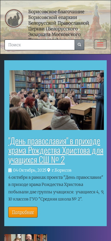 | SEO-описание | Первое Борисовское благочиние - Борисовская епархия - Белорусская Православная Церковь. Новости церковной жизни Борисова и Борисовского района, новости приходов, статьи на христианскую тематику |
