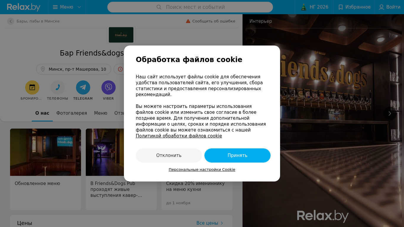 | SEO-описание | Паб Friends&dogs (Френдс&догс) в Минске – отзывы, телефоны, график работы и карта проезда на Relax.by |