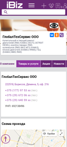 | AI-анализ | The website is a business-to-business platform for GlobalTechServis OOO, a company based in Borisov, Belarus, offering capital and regular repair services for engines (YAMZ, KAMAZ, DEUTZ, DETROIT DIESEL), transmission boxes (YAMZ), crankshafts (YAMZ, MAZ, MTZ, KAMAZ), engine blocks (KAMAZ, YJAMZ), and engine control units (KAMAZ, MMZ, YAMZ). The site provides contact information and a map scheme for the company located at 222518, Demina 5, office 216, in Borisov. It includes sections for company information, products and services, and contact details with phone numbers for three different contacts. The website operates from Monday to Friday, 9:0 |