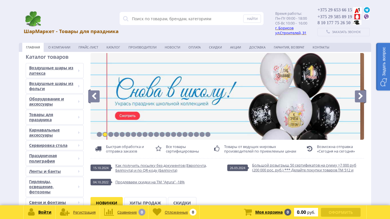| AI-анализ | --- The portal Sharmarket.by is an online shopping store selling items for celebrations, balloons, and carnival products. Customers can place a call requesting information by filling out a form with their name, phone number, desired call time, and a code from an image. The store offers various types of balloons such as latex and foil ones, as well as decorative figures and accessories. Additionally, there are sections for equipment and accessories for helium and balloons, as well as various items for celebrations like Bengal lights, confetti, and decorative pins. The store also provides various types of party supplies including tableware, cutlery, and serving utensils. The store's opening hours are Monday to Friday from 9:00 to 18:00 and Saturday to Sunday from 10:00 to 16:00. |