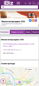 | AI-анализ | This website is for Inkom Interservis OOO, a company offering financial and return leasing services. The address and contact phone number (375 44 566 87 xx) are provided, along with the company's location on M-8 highway, 97km, office 1, in the Voronovsky selsoviet, Vitsebsk region. The company's business hours are listed as Monday to Friday, 9:00am to 6:00pm, without lunch breaks. The website includes sections for company information, products and services, news, vacancies, videos, and customer reviews on Vkontakte and Odnoklassniki. The site also has a map and information on how to reach the office, as well as terms of use and a public contract. The company is listed under the category of leasing services, |