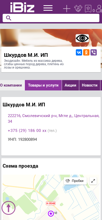 | AI-анализ | The web project "Шкурдов М.И. ИП - Экодизайн" specializes in furniture made of solid wood, rare wood slabs, and woven items from willow and nut branches. The company's address is in Minsk, Belarus, specifically at Центральная 34 in the Mgле district. Contact information, including a phone number and UNP, is provided on the website for those interested in their products or services. The business offers furniture under the categories of 'Мебель', 'Акции', 'Новости', 'Объявления', 'Закупки', and 'Вакансии'. The website also has sections for 'Видео' and 'Отзывы', likely for showcasing videos of their products and customer testimonials. Additionally, the site is listed under the rubric |