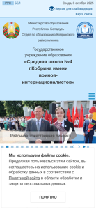 | AI-анализ | This website is for the Middle School No. 4 in the city of Kobrin, Belarus, named after the internationalist soldiers. The title and description are in Russian. The keywords include "2025," "read," "further," "school," "news," "education," "Belarus," "site," "republic," "https," "institutions," "classes," "social-pedagogical support," and "assistance." The top_words are "2025," "read," "further," "school," "news," and "education." The website uses cookies and has a Russian-language version, a standard font size, and a monochrome color scheme. It belongs to the Ministry of Education of the Republic of Belarus and offers an administrative procedure, an electronic application, and a contact section. The site contains information on the school schedule |