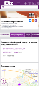 | Название / Заголовок | Ошмянский районный центр гигиены и эпидемиологии ГУ - Ошмянский районный ЦГЭ. Обеспечение санитарно-эпидемиологического благополучия населения района.. 231103, Ошмяны, , Советская, 64 |