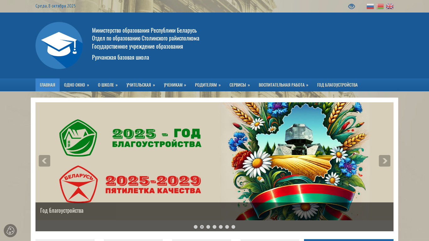 | AI-анализ | The website "Рухчанская базовая школа" (Ruhchanskaya bazovaia shkola, or Ruhchan School) is a Belarusian educational institution, as evidenced by its title and the predominant use of Belarusian words in the top_words list. The school's title translates to "Ruhchan Basic School." The domain name is registered under the .BY top-level domain and is part of the roo-stolin.gov.by network. No other information about the school, such as its location, focus, or specific educational programs, is provided in the given data. |