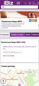 | AI-анализ | language: ru This website is a patent bureau offering a full range of services for registering and protecting intellectual property rights in Belarus and beyond. The company is located in Minsk, Belarus, at Platonova Street 20B, block № 3, office № 201. Contact information includes the phone number +375 (17) 234 82 xx. The website provides information on patent services, company news, job vacancies, and customer reviews, among other things. Users can create their own business card and view traffic statistics. Office hours are from 9:00 to 18:00, with a lunch break from 13:00 to 14:00, Monday through Friday. The company is listed in the "Patent services" and "Patent services in Minsk" categories of the IBiz |