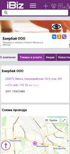 | AI-анализ | The web project "Baerbaй OОО" is a business-to-business marketplace for buying and selling established businesses in Minsk, Belarus. The company's address is given as 220073, Kalvarya Street, 33/3, apartment 209, in Minsk. The project includes a map for navigation and contact information with phone number +375 (44) 770 50 xx. The business hours are listed as Monday to Friday from 10:00 to 18:00, without lunch breaks. The website offers various services, including consulting, and features sections for news, vacancies, and client testimonials. Users can create their own business cards, view traffic statistics, and contact the company directly through the website. The site is categorized under consulting services in Minsk |