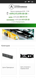 | AI-анализ | language: ru The web project 'Agrocepi.by' is an e-commerce platform selling various types of industrial chains. The offered chains include roller, bevel, chain drives, and zigzag chains, available both in stock and on order. The website provides certified products and delivers within Belarus. The top keywords for the website are 'цепи' (chains), 'роликовые' (roller), 'тип' (type), 'приводные' (driving), 'купить' (buy), and 'тяговые' (towing). The website includes detailed product categories such as chains with single, double, three, four, and six to eight rows, as well as motor chains, heavy-duty chains, and variable chains. The available chain types range from standard ISO and ANSI series to specialty industrial chains, meeting various industry standards such |