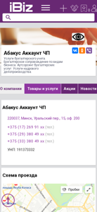 AI-анализ | The portal Abacus Account CP offers accounting services, business support, and human resources management. Services include bookkeeping, business consulting, outsourcing of accounting services, and personnel record keeping. The company is located in Minsk, at Uralsky per., 15, office 200. Contact information includes phone numbers +375 (17) 269 91 xx, +375 (29) 380 49 xx, and +375 (33) 380 49 xx. Business hours are Monday through Friday, 9:00 AM to 6:00 PM, without lunch breaks. The company specializes in accounting, auditing, and related services. |