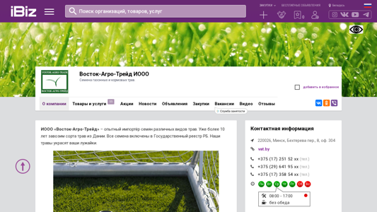 | Название / Заголовок | Восток-Агро-Трейд ИООО - Семена газонных и кормовых трав.. 220026, Минск, , Бехтерева пер., 8, оф. 304 |