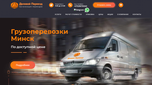 | SEO-описание | Грузоперевозки по Минску и области - низкие цены. Большой автопарк автомобилей грузоподъемностью от 500 кг до 20 т. С грузчиками и без! Заказ по тел.: +375 (29) 345-29-29 |