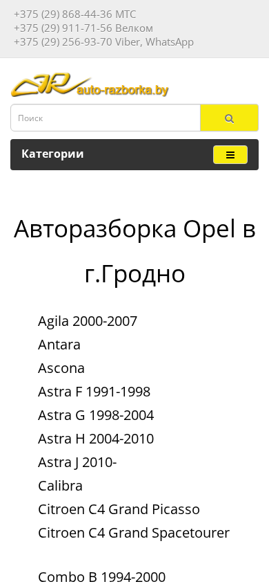 | Ключевые слова | авторазборка опель гродно разборка б у запчасти вектра омега калибра |