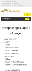 | AI-анализ | The website is an auto parts store specializing in Opel models in Grodno, Belarus. It offers a wide range of original Opel parts at low prices. The website's title is "Авторазборка Opel в Гродно - купить б/у запчасти" and its description includes keywords such as "Opel," "Grodno," "parts," and "used." The top_words indicate frequent mentions of "parts," "375," "Renault," and "Grodno." The website provides phone numbers for contact and mentions categories like "Запчасти СТО" (parts for STO, or service and repair), "Обратная связь" (customer service), and various Opel models like "Omega," "Vectra," and "Corsa." The website also offers deals and hard-to |