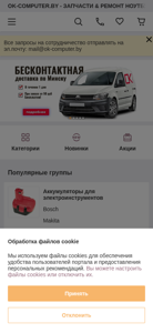 | AI-анализ | language: ru The website OK-COMPUTER is an online store selling spare parts and components for notebook computers. It offers a wide range of batteries, keyboards, power blocks, screens, and other details at affordable prices with quick delivery across Belarus. Customers can purchase components with extended warranties. Products include accumulator batteries, keyboards, screens, charging devices, motherboards, coolers, power cords, and various adapters for different brands like Samsung. The website also offers discounted items and services such as processor upgrades, webcam installation, and laptop repair. Contact information for sales, service, and customer support is provided. |