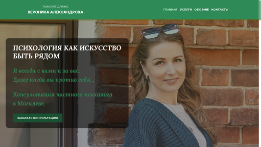 | AI-анализ | The web project "Психолог Вероника Александрова" (veronikalexandрова.by) is a psychological counseling service website for individuals in need, offering various services including individual and family consultations, therapeutic groups, and information about the therapist's approach and methods. The website is operated by Veronika Alexandrova, a licensed psychologist and gestalt therapist who began her career in psychology through her passion for dance and working with young athletes. The site provides information about her background, education, and professional development, emphasizing her focus on the importance of psychological preparation for athletes and her dedication to helping those in difficult life situations. The website also includes a contact section for scheduling consultations and a section on the therapist's philosophy and approach to her work. The site is primarily focused on the Belarusian language and audience, with a clear and concise design that effectively commun |