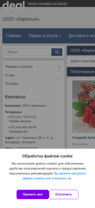 | AI-анализ | The web project "ООО «Карилья»" is an e-commerce website selling sweet flower bouquets and baskets. The company's contact information, including phone numbers +375 (29) 778-37-22 and +375 (44) 480-99-59, is provided for placing orders. The site offers various sweet bouquets and baskets for sale, such as "Ника," "Виктория," "Карина," and "Мальвина," with prices ranging from 19 to 53 rubles. The site also mentions a top sale item, "Сладкая цветочная корзина 'Карина'" which is available for order. The site is registered under the company name ООО "Карилья" and |