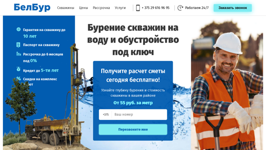 | AI-анализ | This online resource is dedicated to water well drilling and equipment installation services. The company offers drilling of water wells and installation of necessary equipment such as pumps, heads, and adapters. The services are of high quality and completed within a day. The company serves the Homel region with affordable prices. The website contains information about the pricing, financing options, and services offered. Visitors can either send a message or call the provided phone number for consultation or to place an order. The website also offers a free quote for well drilling and an option to choose between a sand well or a filter well. The company guarantees the well for 10 years and offers a passport for it, as well as financing options with no interest for up to 6 months and a credit for up to 5 years. The website also highlights the benefits of having a private well, such as having clean water, independence from communal services |