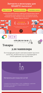 | SEO-описание | Предлагаем купить все для маникюра и педикюра в нашем интернет-магазине. Широкий ассортимент материалов для покрытия гель-лаком и наращивания ногтей. Доставка по всей Беларуси |