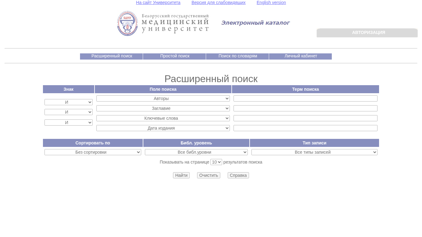 | Название / Заголовок | Электронный каталог БГМУ [1.25] - Расширенный поиск |