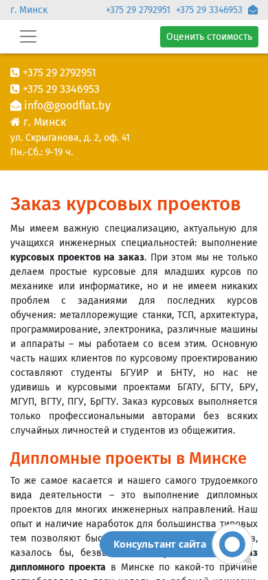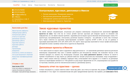 | AI-анализ | --- This online resource provides various types of assistance to college and university students in Minsk, Belarus. From taking distance tests and reports on practical work to completing diploma projects. The team has in-house authors and guarantees on-time delivery without delays or revisions, while ensuring plagiarism-free work. Services include assistance with controlling tests, kursovyi projects, diploma projects, and reports on practical work. The company specializes in kursovyi projects for engineering specialties and caters to students from BGUIR and BNTU, among others. Professional authors only carry out the work, and the company only accepts orders from serious clients. The team also handles diploma projects for various engineering fields, ensuring quick and plagiarism-free results, even with short deadlines. The cost of diploma projects starts at 1,100 rub |