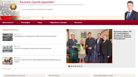 | AI-анализ | This online resource is dedicated to the work and activities of Sergey Adamovich Kazachok, a Belarusian deputy in the National Assembly. The website features information about Kazachok's legislative, international, and local activities, as well as his biography, reports on his work, and contact details. Keywords associated with the website include "Belarus," "parliament," "news," and "deputy." The website also mentions Kazachok's involvement in various events, such as meetings with the public and attending ceremonies, as well as his participation in sessions of the National Assembly. The domain name is kazachok.house.gov.by. |