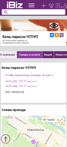 | AI-анализ | The portal bely-parason.ibiz.by is a company specializing in the production of custom furniture. The business is located in Novopolotsk, Belarus, at the address Блохина, 16, ком. 3. The contact details for Belorus Parason CTUPP include two phone numbers: +375 (29) 719 11 xx and +375 (44) 719 11 xx. The company's UNP number is 390529154. The website offers various services related to furniture production and features sections for company information, products, news, and customer reviews on social media platforms such as VKontakte and Odnoklassniki. The business hours are Monday to Friday from 9:00 AM to 6:00 PM without lunch breaks |