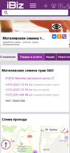 | Название / Заголовок | Могилевские семена трав ОАО - Доработка семян - очистка, сушка, протравливание.. 212016, Могилев, , Шкловское шоссе, 27 |