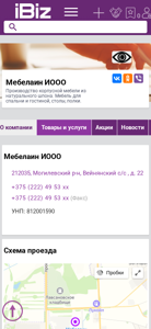 | AI-анализ | The portal Mebelain IOOO is a Belarusian company specializing in the production of solid wood furniture. The website offers a range of furniture for bedrooms and living rooms, including tables and shelves. The company's contact information, including addresses and phone numbers, is provided, along with a map for easy access. The website also features sections for company information, products and services, news, and announcements for vacancies and promotions. The business hours are listed as Monday to Friday from 9:00am to 6:00pm without lunch breaks. The website is categorized under the 'Furniture' section, specifically 'Wooden Furniture' in the Yandex Business Directory. |