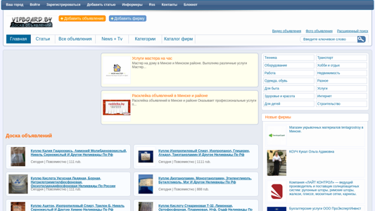 | AI-анализ | --- This online resource is a free announcement board for Moscow and the Moscow region in Belarus. It also provides a Belarusian free announcement board. The site offers various services including video and photo announcements, advertising, and flyer posting in Minsk. Users can register, edit, and update their announcements. There are sections for all announcements, news, and TV news. The site offers a catalog of firms and services, including master services for various tasks in Minsk and the surrounding area. The site sells various non-liquid goods, including potassium hydroxide, ammonium molybdate, nickel sulfate, and other chemicals, throughout Russia and Belarus. Prices are listed for each item, and announcements can be made for these items in various locations. The site also offers a blocknote feature and RSS informers. The domain name is vipboard |