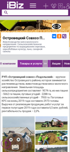 | AI-анализ | The portal is a farming cooperative named Ostrovecsky Sovhoz Podolsky RUP, specializing in livestock production with a focus on meat and dairy. The cooperative engages in agriculture, growing grains, legumes, flax, and sugar beets. The company's address is 231233, Rytan' Agricultural Enterprise, Pervoimayskaya 1, in Podvolskoye, Belarus. They offer free classified ads for buying and selling. The enterprise covers an area of 9074 hectares, with 5662 hectares dedicated to arable land, 2288 hectares for meadows, and 7950 hectares for agricultural land. The herd size was 2973 heads at the end of 2019. The first |