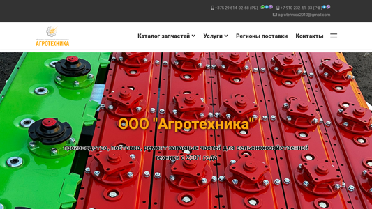 | Название / Заголовок | ООО "Агротехника" - производство, поставка, ремонт запасных частей для сельскохозяйственной техники с 2001 года |