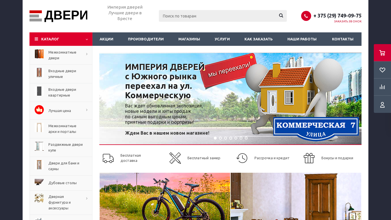 | SEO-описание | Сеть магазинов входных и межкомнатных дверей в Бресте и Брестской обл. Качественные двери разных стилей и ценовой категории! Доставка, рассрочка, установка. |