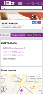 | AI-анализ | The website is for the Belarusian company КВАРТА-М ООО, located at Брестская 2 in the Minsk district, with the postal code 220099. The company specializes in the wholesale and retail sale of materials for car painting and repair. The website provides a map for getting there, as well as phone numbers for contact. The company's Unified State Register number is 290694815. The website also includes information about the company's opening hours, which are Monday to Friday from 9:00 to 18:00, with no breaks for lunch. The website is categorized under 'Automotive Chemicals and Cosmetics' in the Yandex business catalog. |