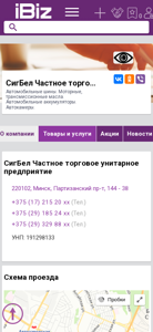 | AI-анализ | The website is a Belarusian e-commerce platform focusing on the sale of automotive parts and accessories. The offered items include tires, motor and transmission oils, batteries, and cameras. The company, SigBel, is located in Minsk at Partizansky pr-t, 144 - 38. Contact information includes phone numbers +375 (17) 215 20 xx, +375 (29) 185 24 xx, and +375 (29) 329 88 xx. The business hours are from 9:00 to 18:00, Monday to Friday, with weekends being closed. The company's UNP number is 191298133. The website also provides a map for visitors to locate the store and a list |