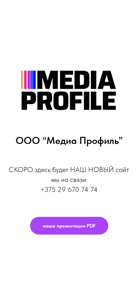 | AI-анализ | The website mediaprofile.by is the online presence of OOO "Media Profile," a media company. The new site will be available soon, and visitors can contact the company at the phone number +375 29 670 74 74 for inquiries. A PDF presentation of the company's offerings is also accessible on the site, which was created using the website builder Tilda. |