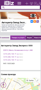 | AI-анализ | The portal Westgroup.ibiz.by is a car rental and transportation services company located in Minsk, Belarus. They offer car rental services with and without a driver, rental of microbuses, car rental with pick-up outside of the country, and airport transfers. The company's contact information, address, and map are provided on the website. Services offered include car rentals, transportation services, and various business-related services. The company's UNP number is 193513429. The website is open for business Monday through Friday from 9:00 AM to 6:00 PM without lunch breaks, and closed on weekends. The contact numbers for the company are +375 (29) 720 71 xx, +375 (44) 720 71 xx, and +37 |
