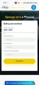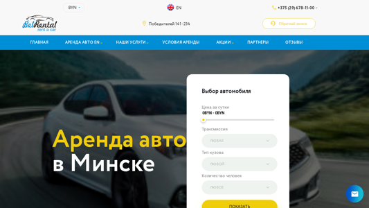 | AI-анализ | --- The portal belrental.by is a car rental service offering various types of vehicles for rent, including economy and business class cars as well as crossovers and minivans. The website provides several services such as delivery of the car to the client, short-term and long-term rentals, and rentals with a driver. The site offers different tariffs including "Bezlimit" and "Vse vkljucheno" with specific conditions. Users can filter their car selection by type, transmission, engine, and seating capacity. Cars available for rent include makes such as Hyundai, Kia, Volkswagen, Ford, Mazda, Honda, and Acura, with various models and years. The website is available in English and Russian, and contact information is provided for inquiries and bookings. |