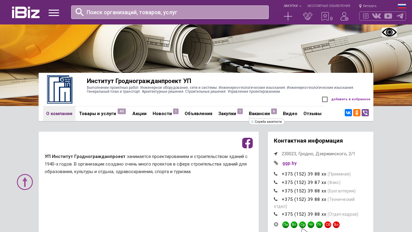 | AI-анализ | This online resource is a website for the Grodno City Urban Projects Institute UP, which offers project execution services. The institute specializes in engineering equipment, networks and systems, as well as geological surveys and investigations. They also provide general planning and transportation, architectural and construction solutions, and project management services. The website includes a section for company information, as well as offerings for services and projects in the areas of construction, education, culture and recreation, healthcare, sports and tourism. Notable projects mentioned on the site include the historical center of Grodno, an historical auto bridge over the Neman River in Grodno, a transportation hub in Mogilev, and the reconstruction of a railway bridge over the Neman River. The site also features sections for news, vacancies, and announcements for tenders and contracts. The domain is registered to ggp.ibiz.by. |