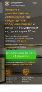 | AI-анализ | --- This website is for a furniture manufacturing company named Фабрика Мебели, specializing in custom-made kitchens and cabinets with a design project. The company, located in Orsha, Belarus, has been in operation since 2002. The website provides information on the production process, pricing, and various options for clients. Users can request a design project for free within two hours and receive an approximate cost in three different variations based on their specifications. The company uses high-quality materials such as Blum fittings, Fenix facades, and Kronospan surfaces. The website also offers financing options and a showroom for viewing completed projects. Potential issues with ordering a kitchen, such as design mismatches, technical difficulties, and hidden costs, are addressed on the site. |