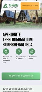 | AI-анализ | The website is an official rental platform for 'АFRAME Домик в лесу' (AFRAME Forest Cabin) in the town of Brest, Belarus. The site offers users the opportunity to rent a cozy, triangular cabin with a fireplace in the forest for romantic getaways or family vacations. The cabin is fully equipped for comfortable living, and users can choose between two available styles: brown or grey. Users can make a booking by leaving a request with their preferred date and number of people, and the administration will contact them within 20 minutes during working hours. The site includes information on the rules of residence, accommodation prices, and availability of additional services such as a bath without an oven. The domain name is vlesu.by. |