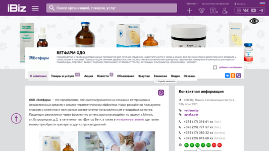 | Адрес | г.Минск, ул.Острошицкая, д.2, в сети ветаптек «Доктор Вет», а также в |