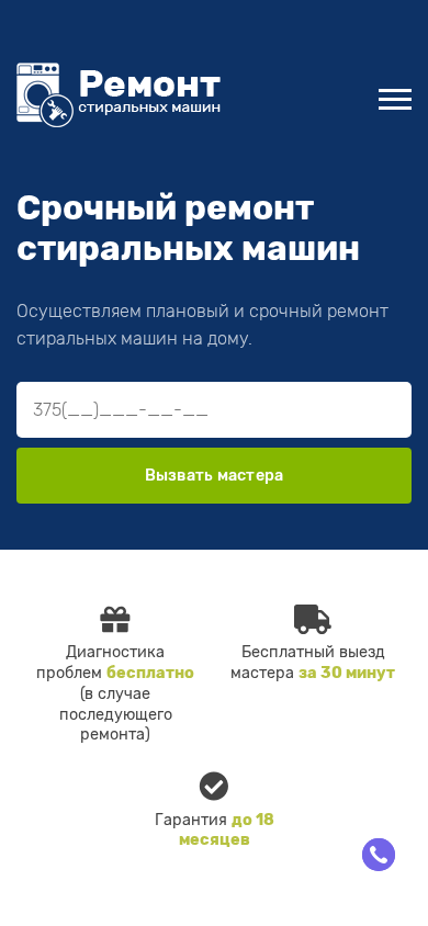 SEO-описаниеСрочный ремонт стиральных машин во всех районах Минска. Профессиональный сервис с вызовом на дом, ремонтируем все бренды стиральных машин. Заявки онлайн принимаются круглосуточно!