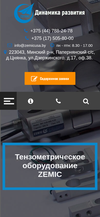 | AI-анализ | The website "Динамика Развития" (Dynamic Development) is an e-commerce platform for the import and distribution of ZEMIC's tension meter weight sensors in Belarus. The website provides information on various types of ZEMIC's tension meter weight sensors, including balancing on a swing S-shaped, one-point, two-lever balancing, column, membrane (washer), mini sensors, and special digital sensors. The website also offers information about the company, delivery, services, certificates, news, and contacts. ZEMIC is a manufacturing group that has been producing and implementing components for various weighing systems for over 50 years. The company's products have been certified by international standards and trusted by China's aviation industry. "Динамика Развития" is the sole official importer and distributor of ZEMIC in Belar |