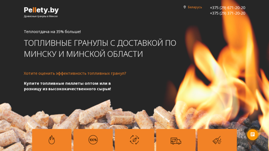 | AI-анализ | --- The web project PELLETY.BY offers top-quality wood pellets for sale in Minsk, Belarus. The company provides both wholesale and retail purchases of pellets, available in one-tonne lots and 15-kg bags with a 6mm size. The pellets are made from clean and dry pine tree sawdust and are delivered throughout Minsk and the Minsk region. The product boasts a thermal efficiency that is 35% higher than that of wood, gas, or coal. Customers can place orders by calling +375 (29) 671-20-20 or +375 (29) 371-20-20. The pellets are a 100% natural, eco-friendly material, with no added chemicals and no sand, dust, or unpleasant od |