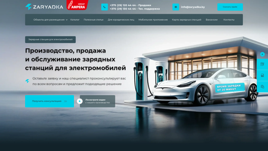 | AI-анализ | --- This website, ZARYADKA.BY, is dedicated to the production, sales, and servicing of charging stations for electric vehicles. Users can leave a request to receive a precise cost estimate based on their specifications. The main menu offers various categories for potential clients, including residential complexes, shopping centers, business centers, hotels and resorts, restaurants and cafes, parking lots and parking garages, auto parks and garages, airports, train and bus stations. The website also includes a catalog, useful articles, vacancies, and contact information, as well as a mobile application and a map of charging stations. The company, OOO "Zaryadka," offers quick charging stations for electric vehicles and requires users to answer five simple questions to determine the best charging station for their needs and receive a price quote. |