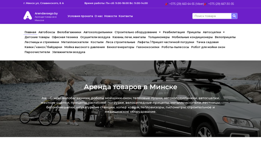 | AI-анализ | This online resource, Arendavsego.by, is a website that provides equipment rental services in Minsk, Belarus. The website offers a wide range of products for rent, including auto boxes, velobagazhnikis (velo baggage trailers), autoholozhnikami (auto refrigerators), construction equipment, thermal ventilators, thermal guns, welding equipment, generators, cement mixers, measuring instruments, timber, ladders and scaffolds, and more. The website also includes sections for rehabilitation equipment, children's toys, office equipment, and air dryers, as well as various types of vehicles for rent, such as trailers, auto scaffolds, and a garden cart. The website includes a menu with sections for conditions of rental, about the company, news, and contacts. The company's location and hours of operation are listed, |