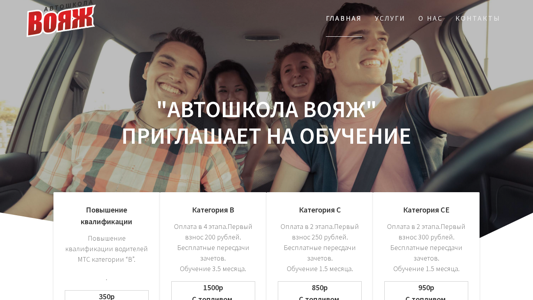 | SEO-описание | Автошкола "Вояж" проводит обучение водительским категориям B,C,E в Бобруйске по самым лучшим ценам.Вся информация о стоимости, рассрочке здесь |