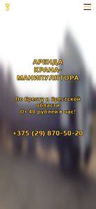 | AI-анализ | This online resource is a website that offers crane-manipulator rental services in Brest, Belarus, and the surrounding region. The website states that the rental rate starts from 40 Belarusian rubles per hour. The company claims to work in Brest and the Brest region, as well as throughout Belarus if necessary. The website provides information on how they operate, the types of tasks they handle, and their contact details. The company also mentions that they work 24 hours a day, 7 days a week, and can accommodate any time and calendar day for a customer's convenience. The crane-manipulator has a hook length of 7.5 meters, a crane arm capacity of 2.2 tons, a machine capacity of 8 tons, a cargo box length of 6.8 meters, a width of 2.5 meters, and a |