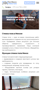 | AI-анализ | This online resource is dedicated to offering affordable polishing services for floors in Minsk, Belarus. The title of the website is "Стяжка Пола в Минске недорого под ключ" which translates to "Polished Floor in Minsk Cheaply Under the Key." The description includes keywords such as "polished floor," "Minsk," and "prices." The top_words indicate that the words "пола," "стяжка," and "минске" appear most frequently on the site. The company's address and phone number are provided, along with a menu for the website's main sections, which include "Price of Polished Floor," "Completed Projects," and "Clean Polished Floor," among others. The site offers both clean and black polished floors, with prices starting at 8 rubles per square meter. All types of |
